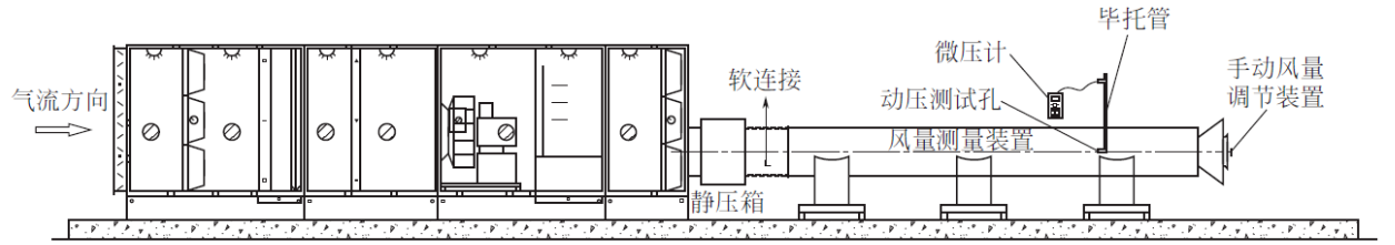 净化空调风系统的调试方案净化空调的风系统调试主要是通过对空调机组性能、风口风量、房间压差的调整、平衡,确保相关参数满足用户使用要求。 (1)空调机组性能 洁净室的净化空调系统调试涉及的机组一般包含空调机组、排风机组。在调试过程中,总风量是机组性能最核心的、最关键的参数之一。机组总风量包含空调机组总风量、排风机组总风量,其中空调机组总风量又包含总送风量、总回风量、总新风量空调机组的总风量若不能满足设计要求,将直接影响房间的换气次数或房间的洁净度、房间的温湿度等核心参数。 通常在机组总风量的调整过程中,一般应同时进行机外余压及系统阻力两个参数的调试。经过对这三个参数的调整确认,就可以初步判定当前状态下的空调机组性能是否能达到要求。空调机组机外余压表明机组克服系统阻力的能力,机外余压越大,其克服阻力的能力就越大;净化空调系统阻力是机组送风管路阻力、回风管路阻力和新风管路阻力之和。机外余压必须大于系统阻力。这里应区别机外余压与机组全压,空调机组的全压应为机外余压与机组本身阻力之和。在空调机组性能的调试中,还涉及振动、噪声、电流、转速等,但在净化空调风系统调试前,应已进行了单机试车,并对机组部分参数作了调整、测试。 现以一个净化空调系统中的空调机组调试过程为例来进行说明,该空调机组包含以下功能段:带有软连接的风阀、袋式初效过滤器、袋式中效过滤器、加热器、表冷器、加湿器、蜗壳风机(带电动机)、中效出风过滤器、出风风阀(带软接头)。调试目的是检查机组箱体的漏风率以及风机电动机运行时的风量和全压。风量测试之前,现场应提供380V的电力接线,且机组的变频器已经安装到位;在漏风率测试之前,机组的所有风阀必须与风管断开。在实施调试前应确认:AHU的调试方案已经批准,调试人员进行过培训,所有设备仪器包括各类连接应按设计要求全部完成、到位,各类连接部分,比如风管、供水、排水等全部到位,所有的电器类连接全部到位,所有的控制和测试元件全部就位(比如传感器、温控器等),供电已经到位。委托方协助提供工作现场所需的升降台和梯子,控制箱已经安装到位,并可供使用。 空调机组调试需配备的测试仪器有:数字差压表、振动测试仪、数显温湿度仪、数字钳形表、噪声仪、毕托管、红外辐射温度计等。 空调机组性能调试的过程为目视检查、开启调试、风量和风压调试以及测试、电流电压测试、转速测试、振动测试、噪声测试和数据处理。目视检查主要是检查机组各部位尺寸的符合性、机组框架结构的符合性、箱体结构是否为可拆卸式、机组方向是否与设计一致、框架安装是否牢固、水盘材质是否与设计要求一致、风口风阀的位置是否正确、风机(含电动机)的型号和技术参数是否正确、风机是否有减振设施、机组过滤框是否正确、加湿器的类型及参数是否符合设计、溢流口的安装高度是否符合要求、照明是否安装到位、软接材料是否与设计一致、检修门开启是否灵活及其密封性、电器开口是否密封、压差表是否安装正确等。 开启调试、测试: ①风机段在额定电压下启动,稳定运转5min切断电源,停止运转,反复进行三次; ②检查风机的转动方向是否正确,螺栓有无松动、风机运行是否平稳等; ③空调机组开启,正常运行后记录。用温度计记录电动机的温度,运行2h后记录。空调机组的风量风压测试,按图2.9.1连接风机段及风管,试验装置由被测风机段、连接管、测试管组成。测量机组静压,用毕托管在测量面管壁上的测压孔取压,将压力计一端与之连接,另一端与周围大气相通,压力计读数即为机组的静压;测量机组动压,将毕托管的直管垂直于管壁,侧头正对气流方向且与风管的轴线平行,读数即为机组动压。通过计算,得出实际送风风量。